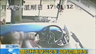 浙江衢州:路灯杆击穿公交车 司机忍痛停车
