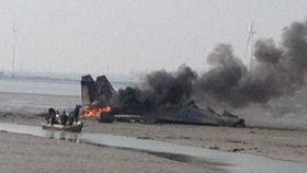 实拍中国苏27战机坠毁后起火升起浓烟