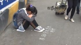 妹子坐地乞讨8元 遭拍起身逃离