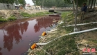 河南西孟姜女河变“血河” 疑企业倾倒废水所致