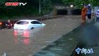 江西赣州暴雨致城区内涝 女子爬被淹车顶求救