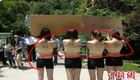 女子景区脱衣排“肉墙”邀游客签名惹争议
