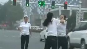 两交警路中央疯狂互殴 警帽都掉了