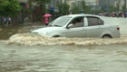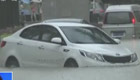 实拍昆明暴雨 车辆冒险涉水被困水中