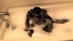 黑猩猩浴缸洗澡像个淘气男孩萌翻天