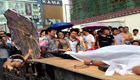 武汉摊贩装死声讨城管 难忍高温"诈尸"
