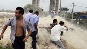 浙江海宁大潮冲塌护栏 近30名游客受伤