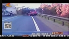 卡车失控如脱缰野马 红色汽车瞬间被毁