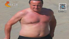卡梅伦沙滩换短裤 裸上身被戏称“红色大卫”