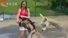 实拍:美女"宠爱"羊驼遭毛驴黑脚