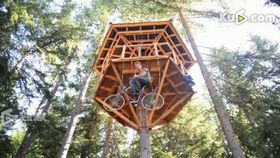 “屌丝男”自制自行车升降机