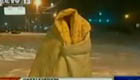 男子发现鸭子被冻湖面 跳湖破冰救援