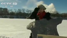 记者体验美国严寒 香蕉敲碎T恤变纸板