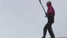 牛人风中蒙眼走钢丝