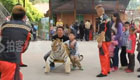 老虎任游客摆布合影