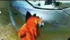 轿车撞上鸡 鸡没事车破了个大窟窿