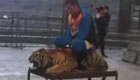 男子发现鸭子被冻湖面 跳湖破冰救援
