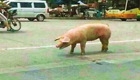 “越狱猪”网络蹿红 运输途中跳车安全着陆