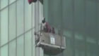 实拍:男子200米高摩天大楼跳伞被挂半空