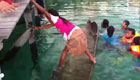 实拍女孩靠腿上功夫挽救沉船