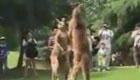 实拍俩袋鼠为食物拳打脚踢 饲养员忙劝架