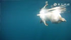 男子发现鸭子被冻湖面 跳湖破冰救援