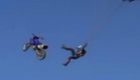 实拍男子骑摩托车完成低空跳伞