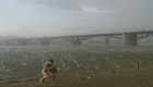 海滩突降冰雹 游客尖叫逃窜