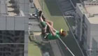 实拍曼谷闹事"高空走扁带" 表演者失足险丧命