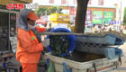 烈日下环卫工人清扫前吃"人丹"防止中暑