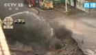 航拍高雄管道爆炸现场:汽车掉进涵洞中被土掩埋