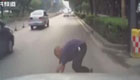 男子发现鸭子被冻湖面 跳湖破冰救援