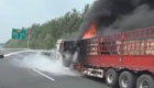 实拍货车起火 整车哈密瓜转瞬成焦炭