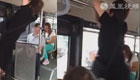 奇葩大妈公交上玩荡秋千
