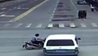 监拍摩托车闯红灯遭面包车推行数十米