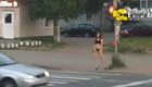 拍客:女子穿透视装当街走猫步 司机撞灯柱