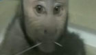 小猴用牙线剔牙 左右纯熟拉扯网友称奇