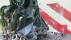 实拍:汽车时速200公里撞墙 瞬间变"罐头"