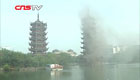 实录:广西桂林标志景区日月双塔发生火灾