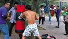 监拍:孕妇乘电梯被挤 引4人激烈互殴