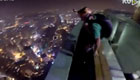 实拍跳伞者从吉隆坡塔顶端 精准跳入天台泳池