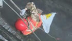 “蜘蛛人”攀岩清理垃圾 场面险象环生