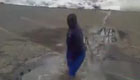 男子发现鸭子被冻湖面 跳湖破冰救援
