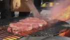 厨师用岩浆烤牛排