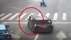 监拍:两车并排左转 男子抡菜刀怒砸旁车