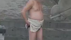 男子发现鸭子被冻湖面 跳湖破冰救援