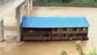 实拍洪水冲走一艘两层船舶