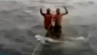 男子发现鸭子被冻湖面 跳湖破冰救援