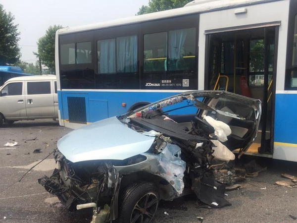 现场:车辆失控连环撞 奥迪起火燃烧司机身亡