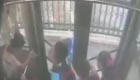 男孩书包被夹 遭公交拖行20米